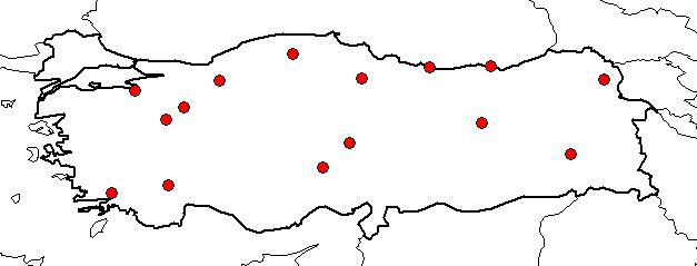| Based on Vilayets: | BOLU, KARS, KASTAMONU, BİTLİS, AĞRI, AMASYA, BURDUR, BURSA, ESKİŞEHİR, KAYSERİ, KÜTAHYA, MUĞLA, NİĞDE, ORDU, TRABZON, TUNCELİ|