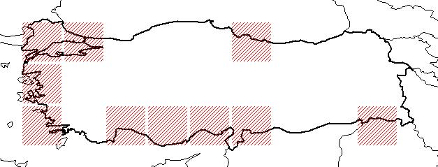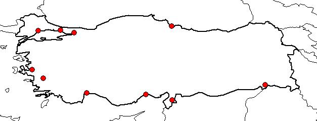 Türkiye dağılımı : Trakya, Dış ve D. (G. uç) Anadolu