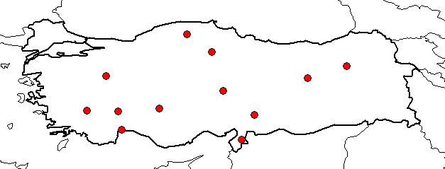 | Based on Vilayets: | KASTAMONU, ANTALYA, ÇORUM, DENİZLİ, ERZURUM, HATAY, ISPARTA, KAYSERİ, KONYA, KÜTAHYA, KAHRAMANMARAŞ, TUNCELİ|