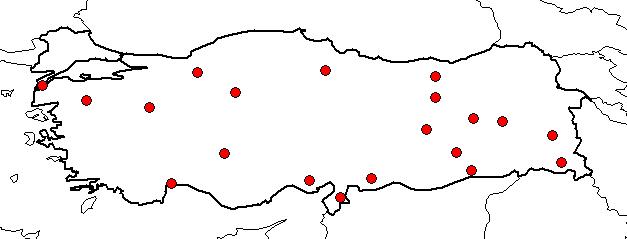 | Based on Vilayets: | ADANA, BOLU, GAZİANTEP, HAKKARİ, MARDİN, AĞRI, AMASYA, ANKARA, ANTALYA, BALIKESİR, BİNGÖL, ÇANAKKALE, DİYARBAKIR, ELAZIĞ, ERZİNCAN, GÜMÜŞHANE, HATAY, KONYA, KÜTAHYA, MUŞ, VAN|