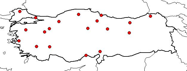 | Based on Vilayets: | OSMANİYE, BOLU, İSTANBUL, KASTAMONU, AMASYA, ARTVİN, BALIKESİR, DENİZLİ, ESKİŞEHİR, GÜMÜŞHANE, ISPARTA, İÇEL, İZMİR, KIRKLARELİ, KÜTAHYA, SAMSUN, SİVAS, TUNCELİ, YOZGAT|