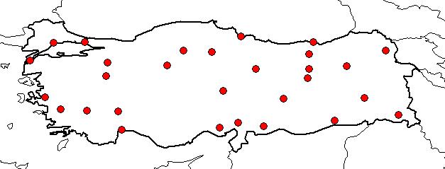 | Based on Vilayets: | ADANA, OSMANİYE, GAZİANTEP, İSTANBUL, KARS, HAKKARİ, MARDİN, ÇANKIRI, BİTLİS, AĞRI, ANKARA, ANTALYA, AYDIN, BİLECİK, ÇANAKKALE, ÇORUM, DENİZLİ, ERZİNCAN, ERZURUM, GÜMÜŞHANE, ISPARTA, İZMİR, KAYSERİ, KÜTAHYA, MALATYA, SAMSUN, SİVAS, TEKİRDAĞ, TRABZON, TUNCELİ|