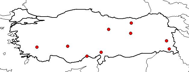 Türkiye dağılımı : K., O., G. ve D. Anadolu