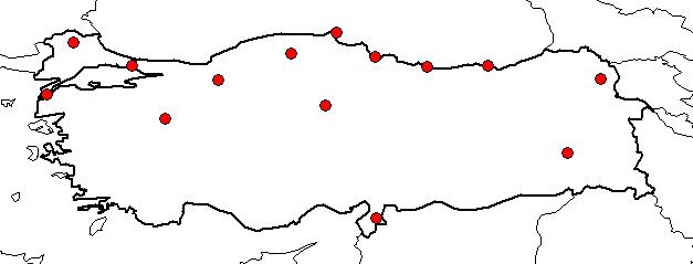 Türkiye dağılımı : KB. Türkiye, K., G. ve D. Anadolu