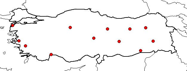 Türkiye dağılımı : B. Türkiye, KB. ve Karasal Anadolu
