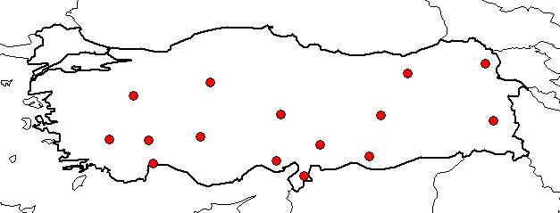 | Based on Vilayets: | ADANA, KARS, ANKARA, ANTALYA, DENİZLİ, ELAZIĞ, HATAY, ISPARTA, KAYSERİ, KONYA, KÜTAHYA, KAHRAMANMARAŞ, ŞANLIURFA, VAN, BAYBURT|