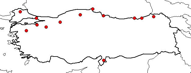 Türkiye dağılımı : KB. Türkiye, K. ve G. Anadolu