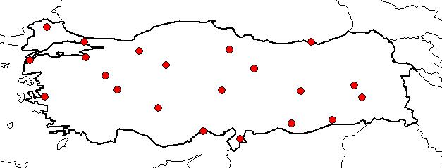 | Based on Vilayets: | BOLU, İSTANBUL, MARDİN, BİTLİS, AFYONKARAHİSAR, AMASYA, ANKARA, BURSA, ÇANAKKALE, ELAZIĞ, HATAY, İÇEL, İZMİR, KAYSERİ, KIRKLARELİ, KONYA, KÜTAHYA, MUŞ, SİVAS, TRABZON, ŞANLIURFA|