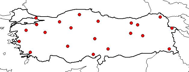 | Based on Vilayets: | ADANA, BOLU, İSTANBUL, IĞDIR, ARDAHAN, HAKKARİ, KASTAMONU, AMASYA, ANKARA, BALIKESİR, BİNGÖL, BURSA, GÜMÜŞHANE, İZMİR, KAYSERİ, KONYA, KÜTAHYA, KAHRAMANMARAŞ, MUĞLA, TUNCELİ, BAYBURT|