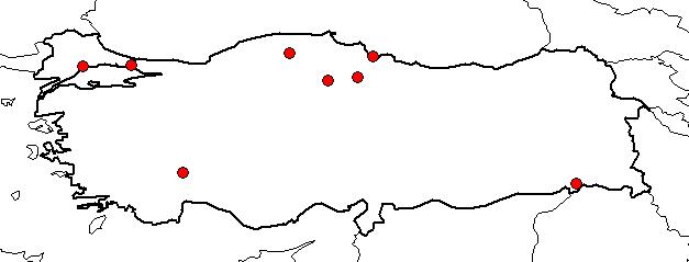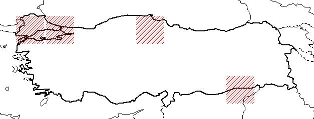 Türkiye dağılımı : K. ve KB. Türkiye, GB. ve D. Anadolu (Mezopotamya)