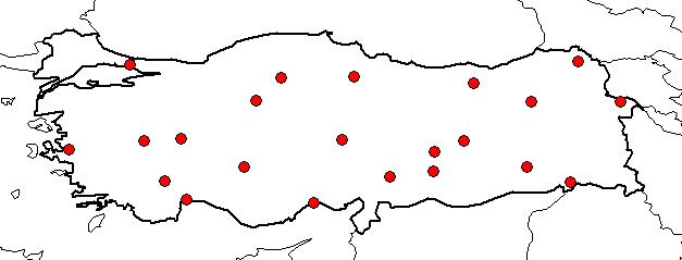 | Based on Vilayets: | İSTANBUL, IĞDIR, ARDAHAN, BATMAN, ŞIRNAK, ÇANKIRI, ADIYAMAN, AFYONKARAHİSAR, AĞRI, AMASYA, ANKARA, ANTALYA, BURDUR, ELAZIĞ, ERZURUM, GÜMÜŞHANE, İÇEL, İZMİR, KAYSERİ, KONYA, MALATYA, KAHRAMANMARAŞ, UŞAK|
