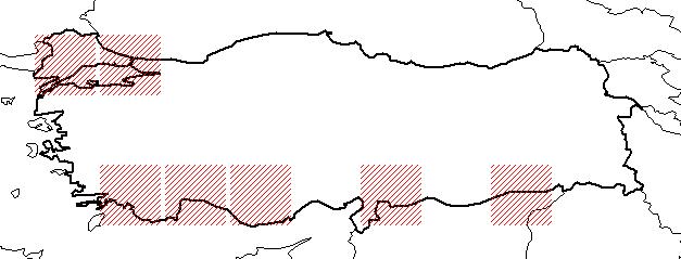 Türkiye dağılımı : KB. Türkiye, Dış ve GB. Anadolu