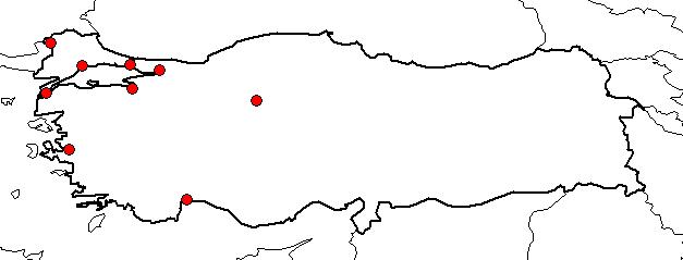 Türkiye dağılımı : KB. Türkiye, B., GB. ve O. Anadolu