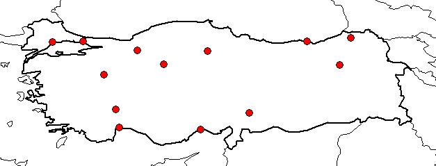 | Based on Vilayets: | BOLU, İSTANBUL, ANKARA, ANTALYA, ARTVİN, ÇORUM, ERZURUM, ISPARTA, İÇEL, KÜTAHYA, KAHRAMANMARAŞ, TEKİRDAĞ, TRABZON|