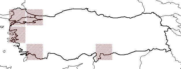 Türkiye dağılımı : KB. ve B. Türkiye, Dç (G. uç) Anadolu