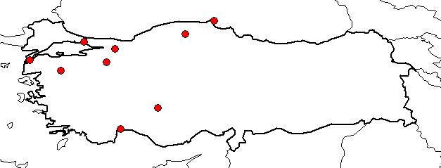 Türkiye dağılımı : K. ve B. Türkiye, O. Anadolu
