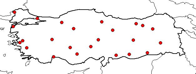 | Based on Vilayets: | BOLU, GAZİANTEP, İSTANBUL, MARDİN, BİTLİS, AFYONKARAHİSAR, AĞRI, AMASYA, ANKARA, ANTALYA, AYDIN, ÇANAKKALE, EDİRNE, ELAZIĞ, ERZURUM, GÜMÜŞHANE, İZMİR, KAYSERİ, KONYA, MANİSA, NİĞDE, SİVAS, ŞANLIURFA, BAYBURT, KARAMAN|
