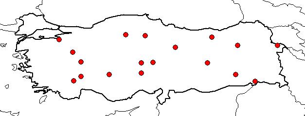| Based on Vilayets: | IĞDIR, BATMAN, ŞIRNAK, ÇANKIRI, AFYONKARAHİSAR, AĞRI, BURDUR, BURSA, ÇORUM, ELAZIĞ, ERZURUM, GÜMÜŞHANE, ISPARTA, KAYSERİ, KONYA, KÜTAHYA, NEVŞEHİR, NİĞDE, SİVAS|