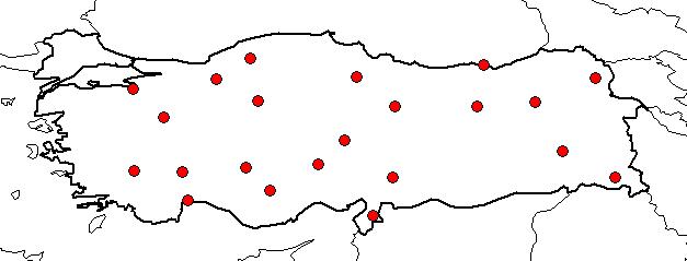 | Based on Vilayets: | BOLU, KARS, HAKKARİ, KARABÜK, BİTLİS, AĞRI, AMASYA, ANKARA, ANTALYA, BURSA, DENİZLİ, ERZİNCAN, ERZURUM, HATAY, ISPARTA, KAYSERİ, KONYA, KÜTAHYA, KAHRAMANMARAŞ, NİĞDE, SİVAS, TRABZON, KARAMAN|