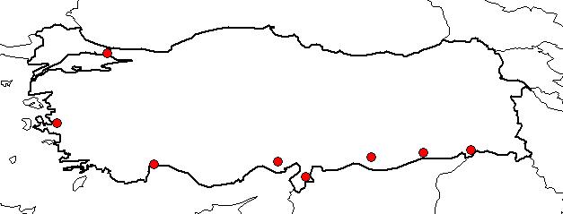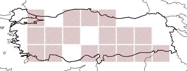 Türkiye dağılımı : KB. Türkiye, B., G., ve D. (G. uç) Anadolu