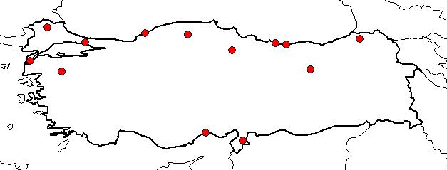 Türkiye dağılımı : Trakya, Dış ve D. Anadolu