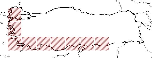Türkiye dağılımı : Trakya, B., G. ve D. (G. uç) Anadolu
