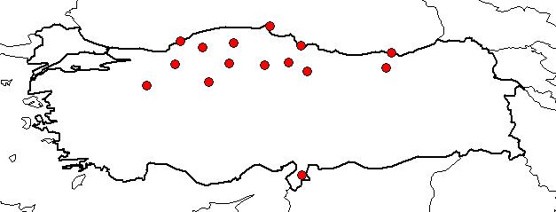 Türkiye dağılımı : K. Anadolu, O. Anadolu, G. Anadolu (Amanoslar)