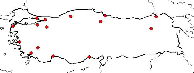 | Based on Vilayets: | İSTANBUL, KARABÜK, AMASYA, ANTALYA, ARTVİN, BİLECİK, BURSA, ÇANAKKALE, DENİZLİ, ERZURUM, İÇEL, İZMİR, KOCAELİ, MUĞLA, SAMSUN|