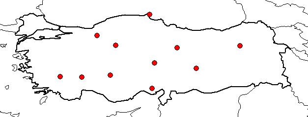| Based on Vilayets: | ADANA, BOLU, AĞRI, ANKARA, DENİZLİ, ERZURUM, ISPARTA, KAYSERİ, KONYA, MALATYA, SİNOP, SİVAS|
