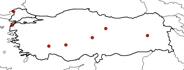 Türkiye dağılımı : KB. Türkiye, K. Anadolu, O. Anadolu, D. Anadolu