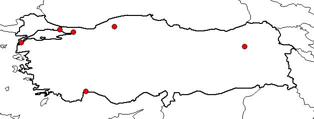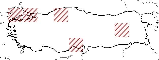 Türkiye dağılımı : Dağınık, Trakya, KB., B., G. ve D. Anadolu