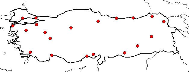 | Based on Vilayets: | ADANA, İSTANBUL, KARS, AFYONKARAHİSAR, AMASYA, ANKARA, ANTALYA, ARTVİN, BALIKESİR, BURSA, ÇANAKKALE, DİYARBAKIR, İÇEL, KÜTAHYA, MUĞLA, MUŞ, ORDU, TEKİRDAĞ, TRABZON, ŞANLIURFA|