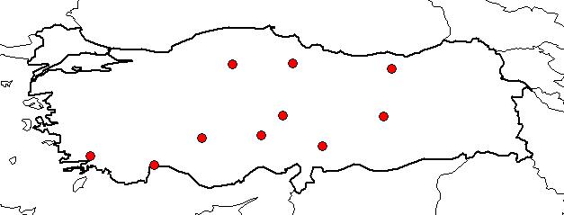| Based on Vilayets: | ÇANKIRI, AMASYA, ANTALYA, ELAZIĞ, GÜMÜŞHANE, KAYSERİ, KONYA, KAHRAMANMARAŞ, MUĞLA, NİĞDE|