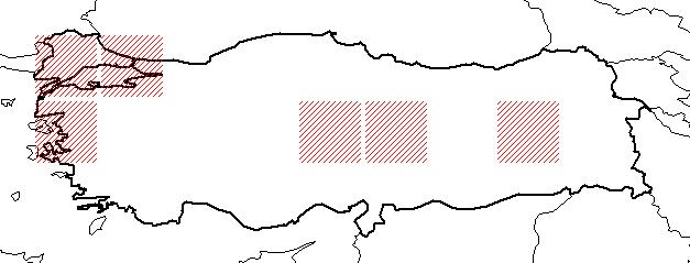 Türkiye dağılımı : KB. Türkiye, Karasal (K. Kısmı) Anadolu