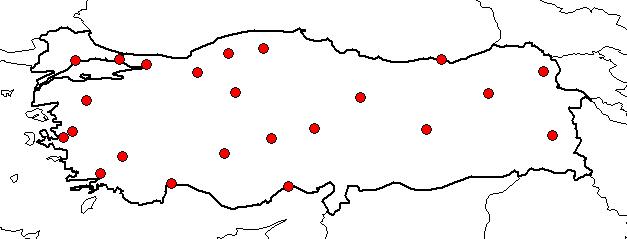| Based on Vilayets: | BOLU, İSTANBUL, KARS, KARABÜK, KASTAMONU, ANKARA, ANTALYA, BALIKESİR, DENİZLİ, ELAZIĞ, ERZURUM, İÇEL, İZMİR, KAYSERİ, KOCAELİ, KONYA, MANİSA, MUĞLA, SİVAS, TEKİRDAĞ, TRABZON, VAN, AKSARAY|
