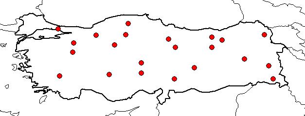 Türkiye dağılımı : Karasal Anadolu, KB. Anadolu, D. Anadolu