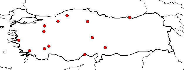 | Based on Vilayets: | BOLU, KARABÜK, BİLECİK, BURDUR, ÇORUM, ISPARTA, İÇEL, İZMİR, KAYSERİ, KÜTAHYA, KAHRAMANMARAŞ, MUĞLA, TRABZON| Taksonun kare düzeyinde dağılımı bulunamadı.