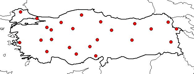 | Based on Vilayets: | ADANA, BOLU, İSTANBUL, IĞDIR, KARS, KASTAMONU, AFYONKARAHİSAR, AMASYA, ANKARA, BİLECİK, BURDUR, ELAZIĞ, ERZURUM, ESKİŞEHİR, GÜMÜŞHANE, İZMİR, KAYSERİ, KIRKLARELİ, KONYA, NİĞDE, SİVAS, UŞAK, VAN, KARAMAN|