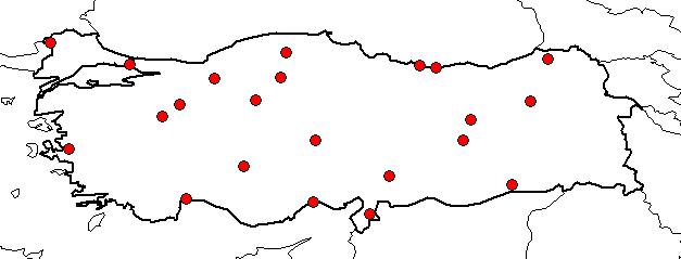 | Based on Vilayets: | BOLU, İSTANBUL, MARDİN, ÇANKIRI, KASTAMONU, AĞRI, ANKARA, ANTALYA, ARTVİN, EDİRNE, ELAZIĞ, ERZURUM, ESKİŞEHİR, GİRESUN, HATAY, İÇEL, İZMİR, KONYA, KÜTAHYA, KAHRAMANMARAŞ, NEVŞEHİR, ORDU, TUNCELİ|
