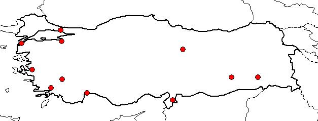 Türkiye dağılımı : Trakya, Dış Anadolu, D. Anadolu