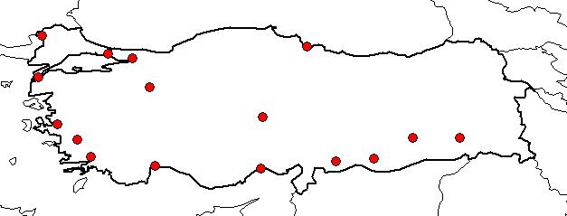 Türkiye dağılımı : KB. Türkiye, B. Anadolu, G. Anadolu, Karasal Anadolu