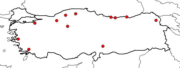 | Based on Vilayets: | BOLU, KARS, KARABÜK, KASTAMONU, AĞRI, ANKARA, BURSA, GİRESUN, İZMİR, KAHRAMANMARAŞ, MUĞLA, ORDU, TRABZON| Taksonun kare düzeyinde dağılımı bulunamadı.