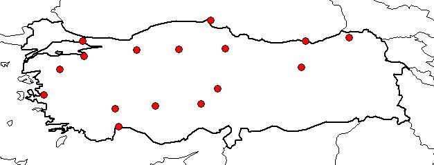 | Based on Vilayets: | BOLU, İSTANBUL, ÇANKIRI, AMASYA, ANTALYA, ARTVİN, BALIKESİR, BURSA, ERZİNCAN, ISPARTA, İZMİR, KAYSERİ, KONYA, NİĞDE, SİNOP, TRABZON|