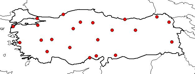 | Based on Vilayets: | ADANA, GAZİANTEP, İSTANBUL, KARS, ZONGULDAK, ÇANKIRI, AFYONKARAHİSAR, ANKARA, ARTVİN, BURDUR, BURSA, ÇANAKKALE, ÇORUM, ERZİNCAN, GİRESUN, İÇEL, İZMİR, KAYSERİ, KONYA, SİVAS, UŞAK, VAN|