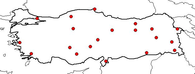 | Based on Vilayets: | İSTANBUL, IĞDIR, HAKKARİ, MARDİN, KARABÜK, ANKARA, ERZİNCAN, ERZURUM, GÜMÜŞHANE, HATAY, İZMİR, KAYSERİ, KONYA, MUĞLA, MUŞ, NİĞDE, SİNOP, SİVAS, VAN, KARAMAN|