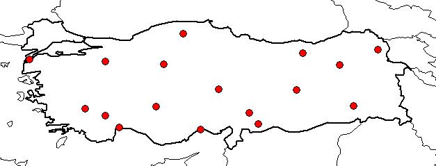 | Based on Vilayets: | GAZİANTEP, KARS, SİİRT, KASTAMONU, ANKARA, ANTALYA, BİLECİK, BURDUR, ÇANAKKALE, DENİZLİ, ELAZIĞ, ERZURUM, GÜMÜŞHANE, İÇEL, KAYSERİ, KONYA, KAHRAMANMARAŞ|