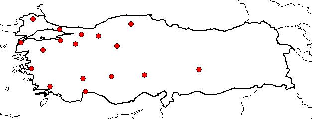 | Based on Vilayets: | BOLU, İSTANBUL, KASTAMONU, ANKARA, ANTALYA, BALIKESİR, BİLECİK, BURSA, ÇANAKKALE, ISPARTA, İZMİR, KIRKLARELİ, KONYA, MALATYA, MUĞLA, NİĞDE, SAKARYA|