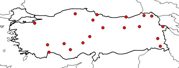| Based on Vilayets: | IĞDIR, ARDAHAN, HAKKARİ, KASTAMONU, AMASYA, ANTALYA, ARTVİN, BURSA, ERZİNCAN, ERZURUM, ISPARTA, KAYSERİ, KONYA, NİĞDE, SAMSUN, SİVAS, TRABZON, VAN, KARAMAN|