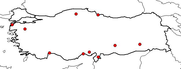 Türkiye dağılımı : G., K. ve KB. Anadolu