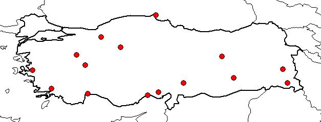 | Based on Vilayets: | ADANA, BOLU, HAKKARİ, AFYONKARAHİSAR, ANKARA, ANTALYA, DİYARBAKIR, İÇEL, İZMİR, KÜTAHYA, KAHRAMANMARAŞ, MUĞLA, SİNOP, TUNCELİ, VAN|